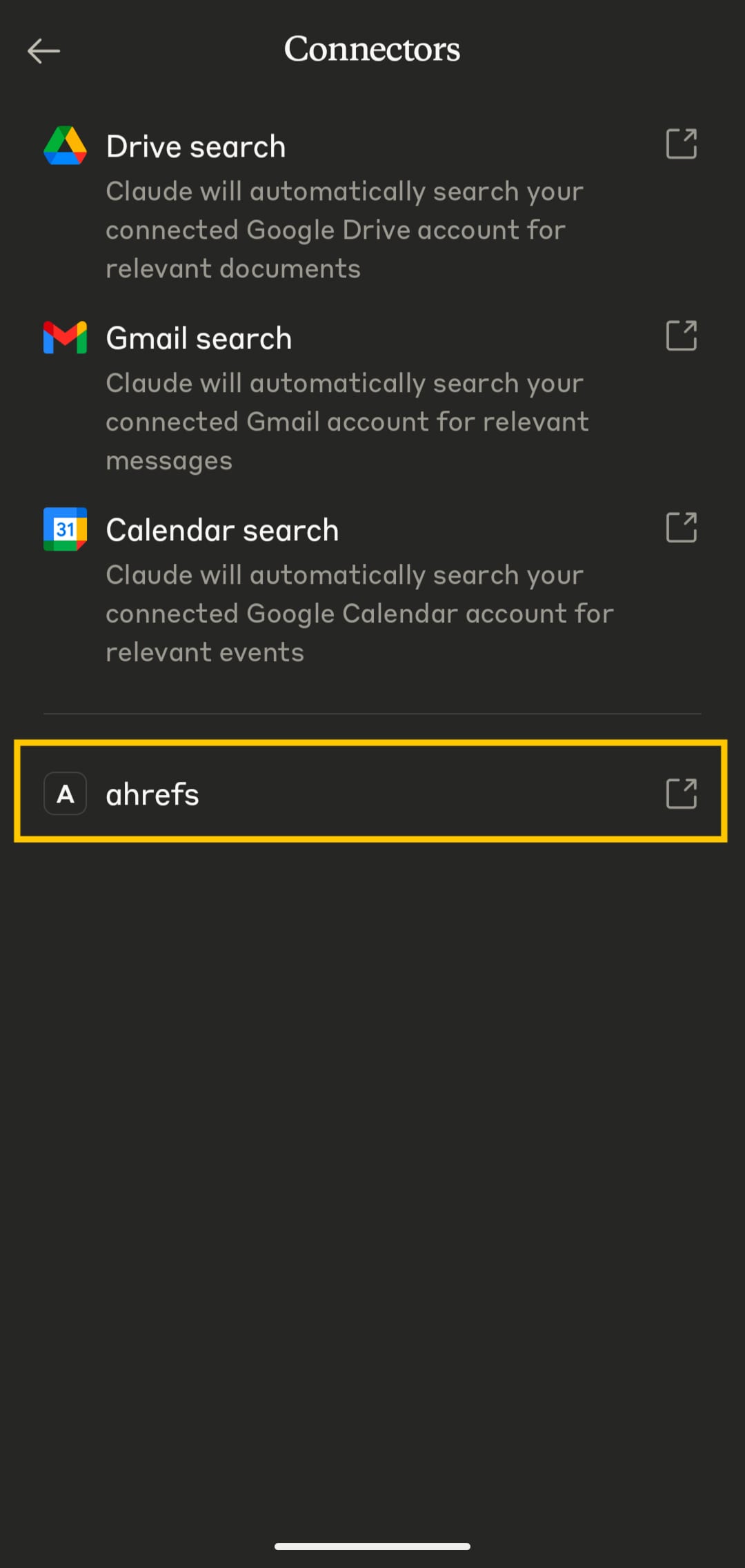 - Select your Ahrefs connector.
