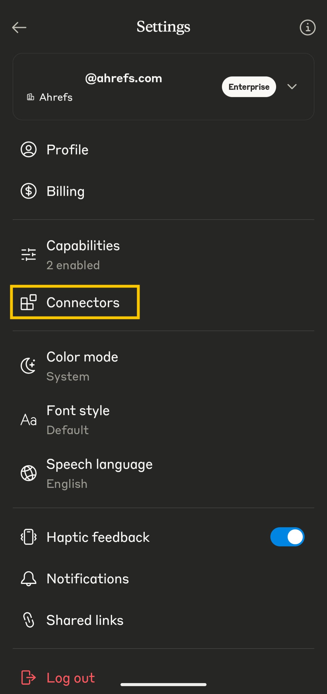- In the Settings, select Connectors.