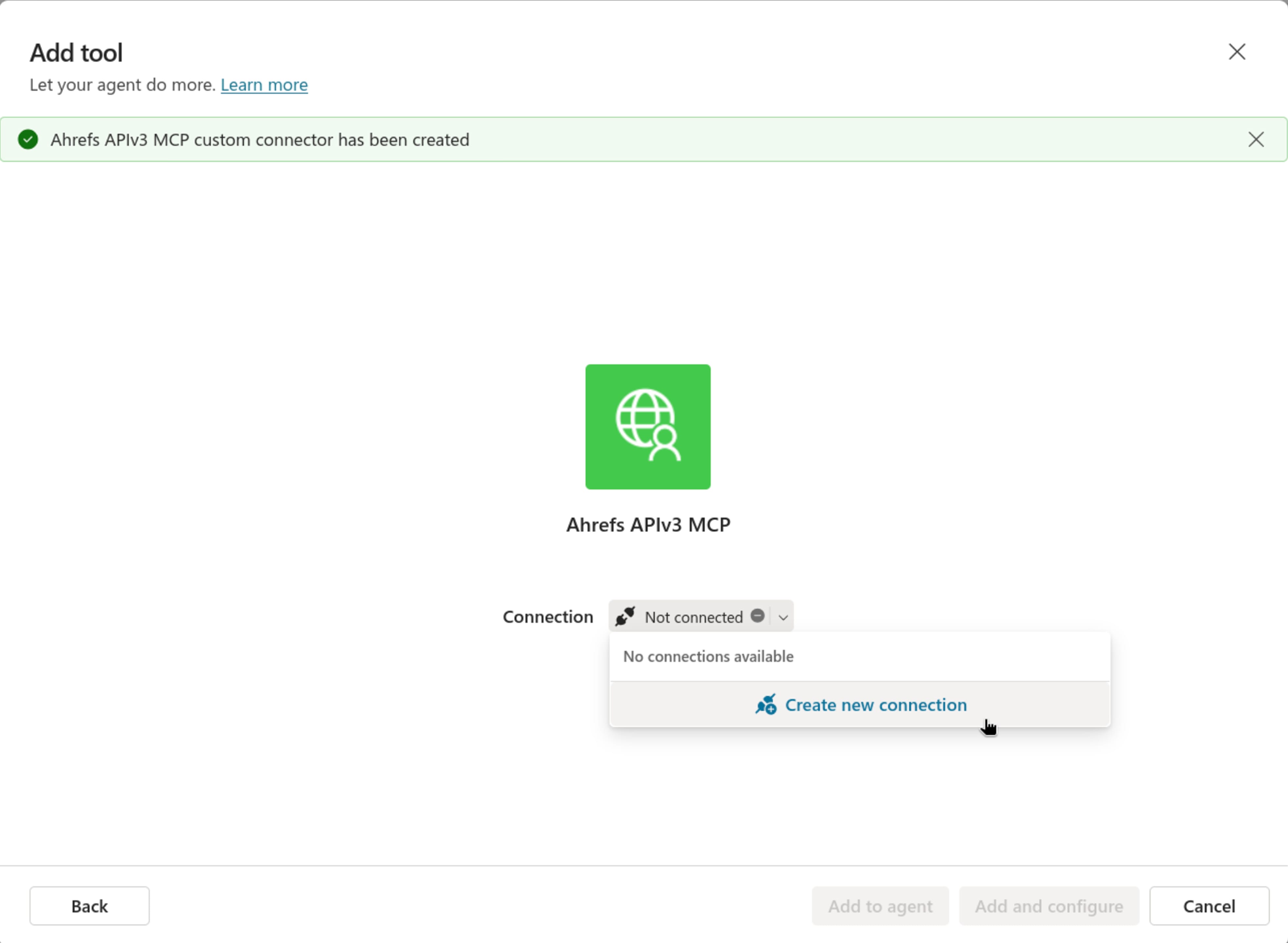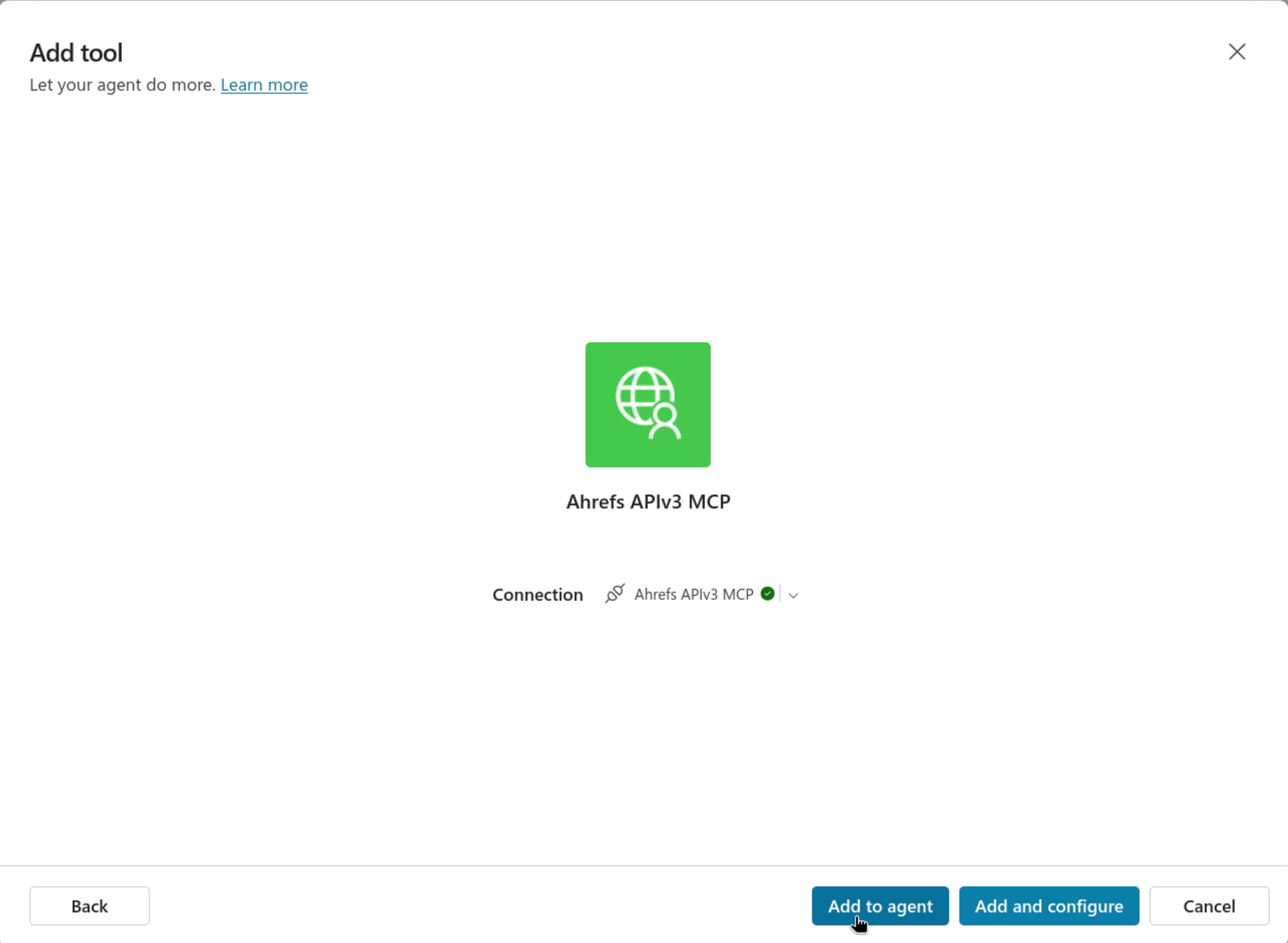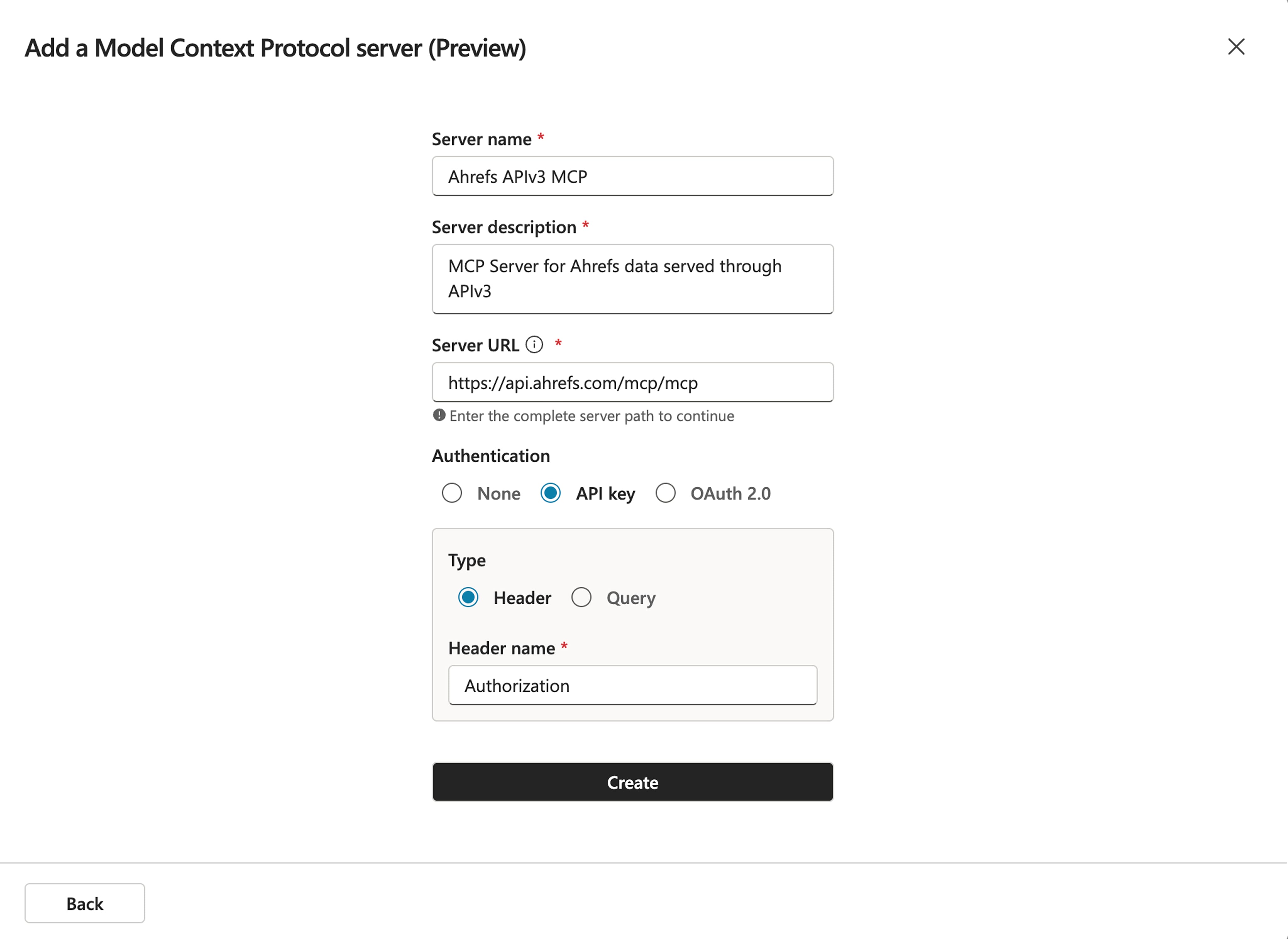 Follow these steps to add Ahrefs MCP server to Copilot Studio: