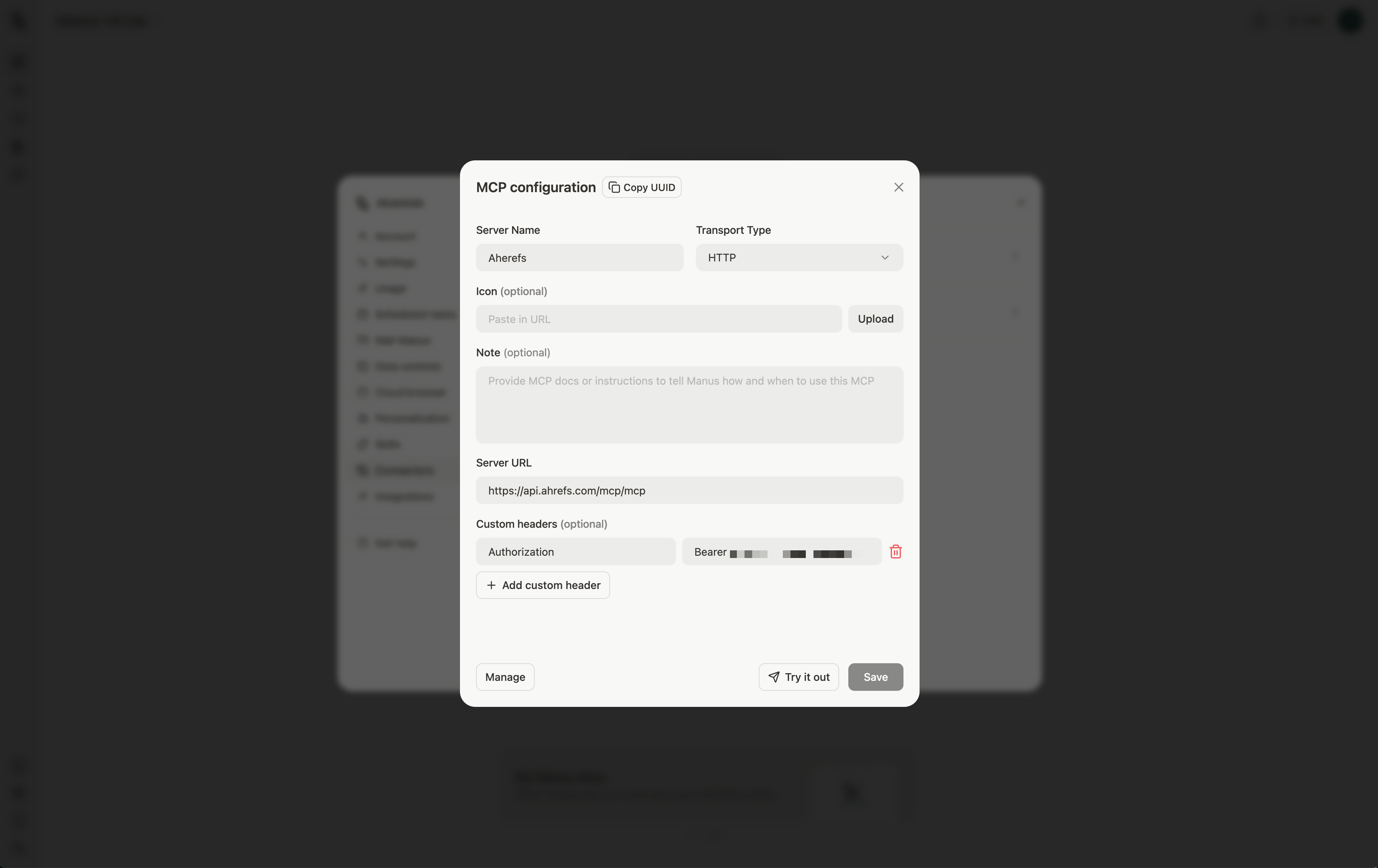 Follow these steps to add Ahrefs MCP to Manus: