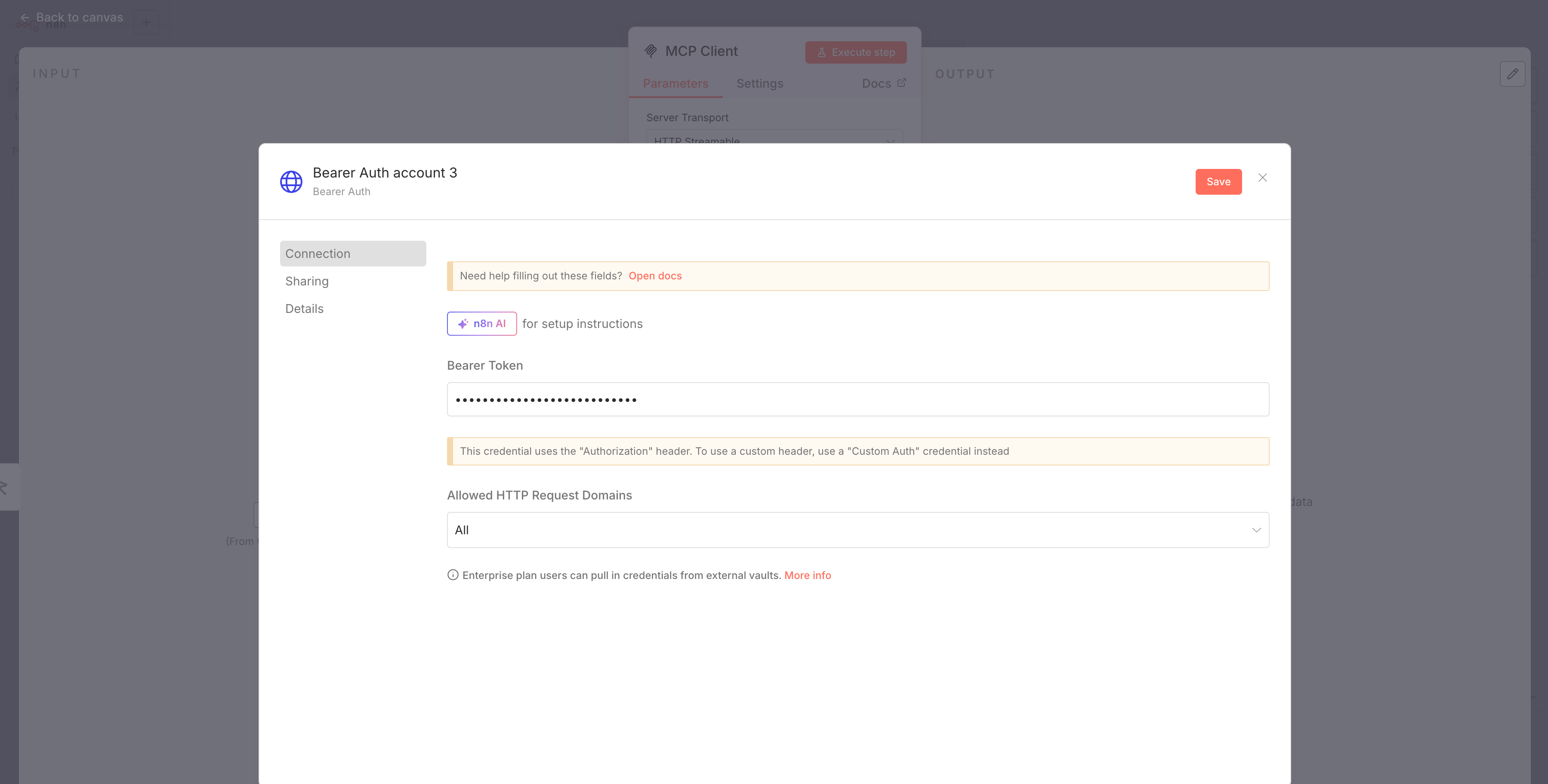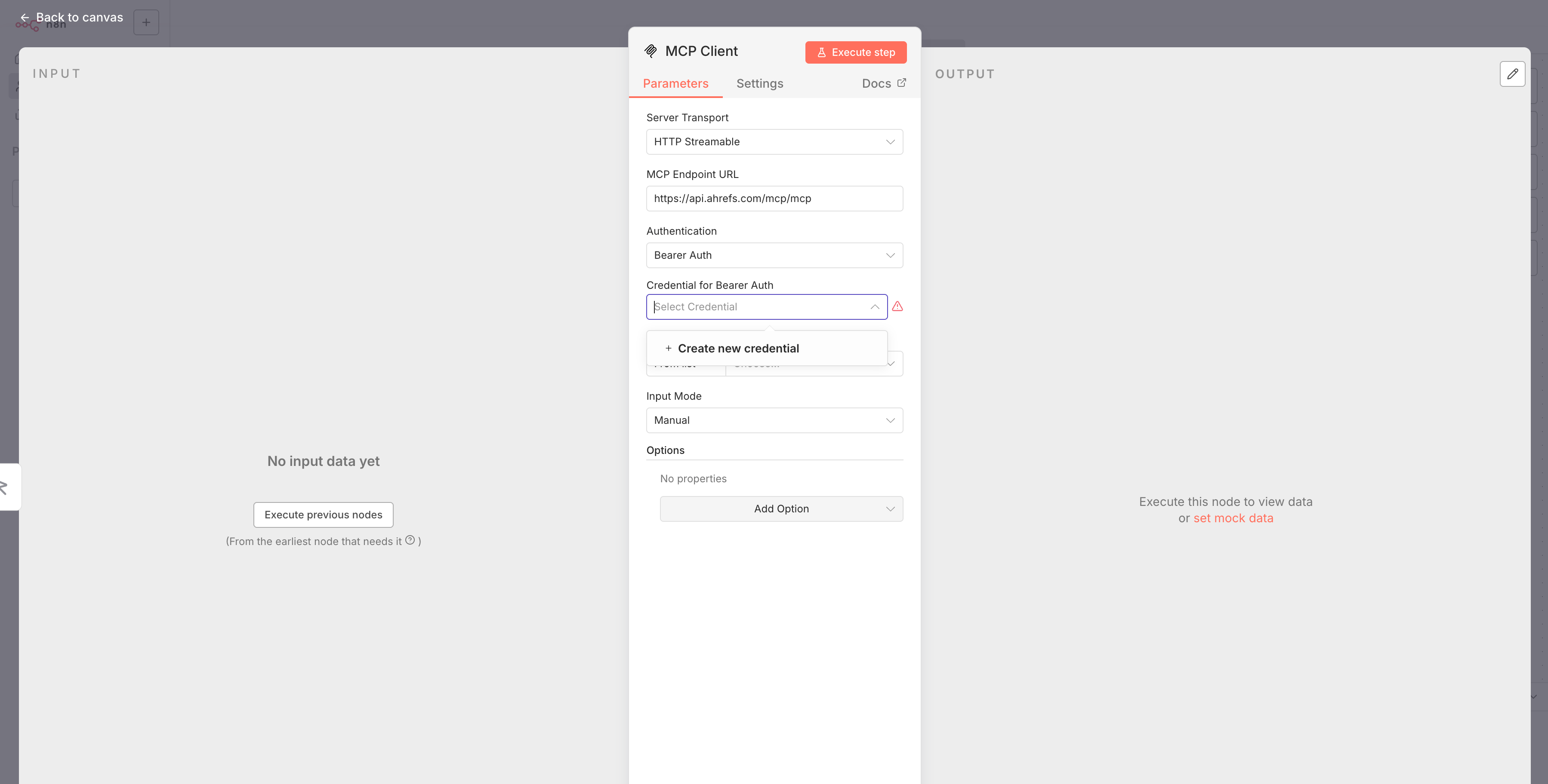 - Credentials for Bearer Auth: Click "Create new credentials"